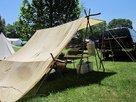 Our neighbor had a old canvas tarp set up like a whelan tent and 2 osage selfbows hanging from the poles. He was from downstate DE and we found out later he might be hunting in the same CO unit as Chris and I this year. I left him my card and email info.